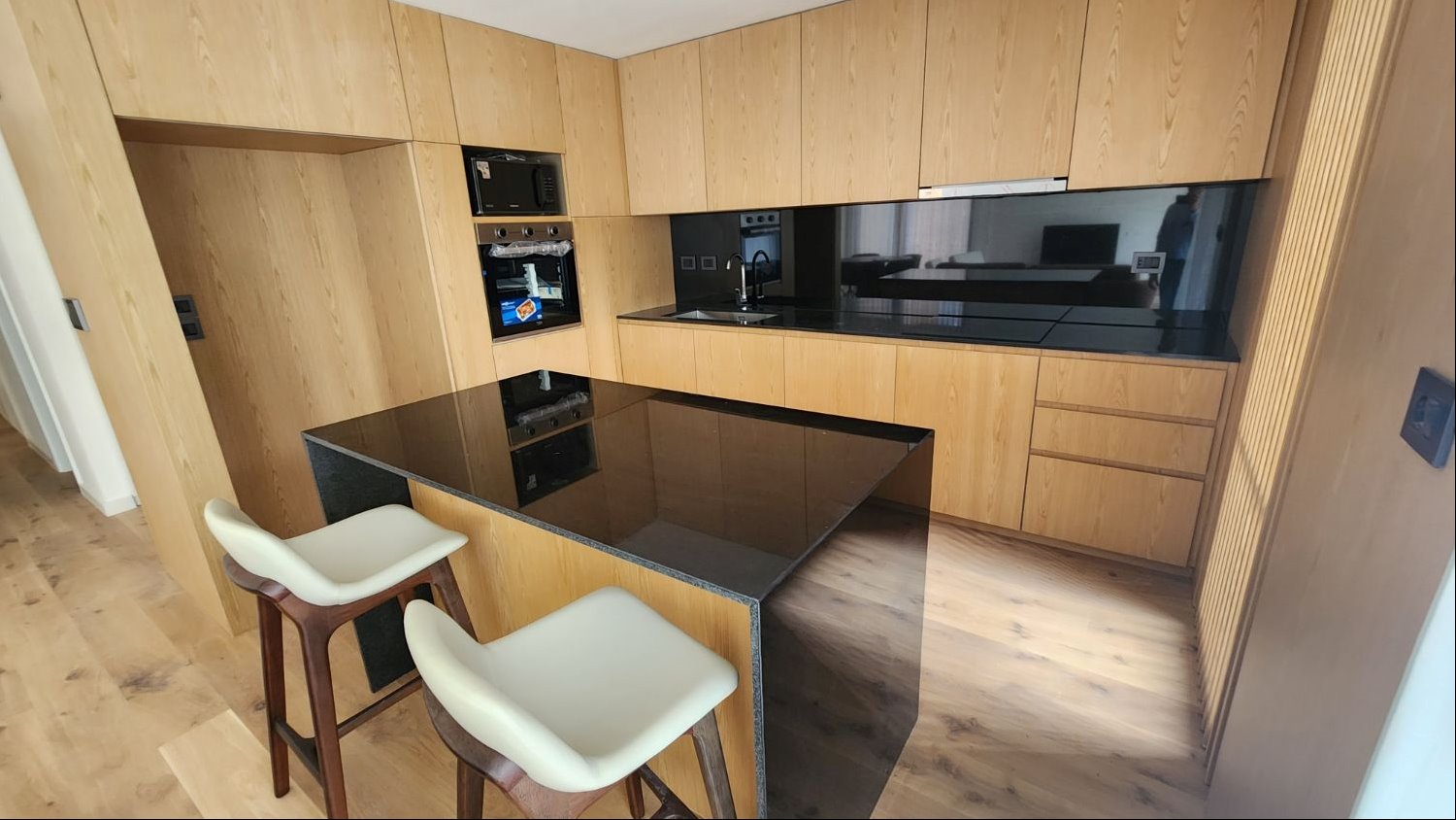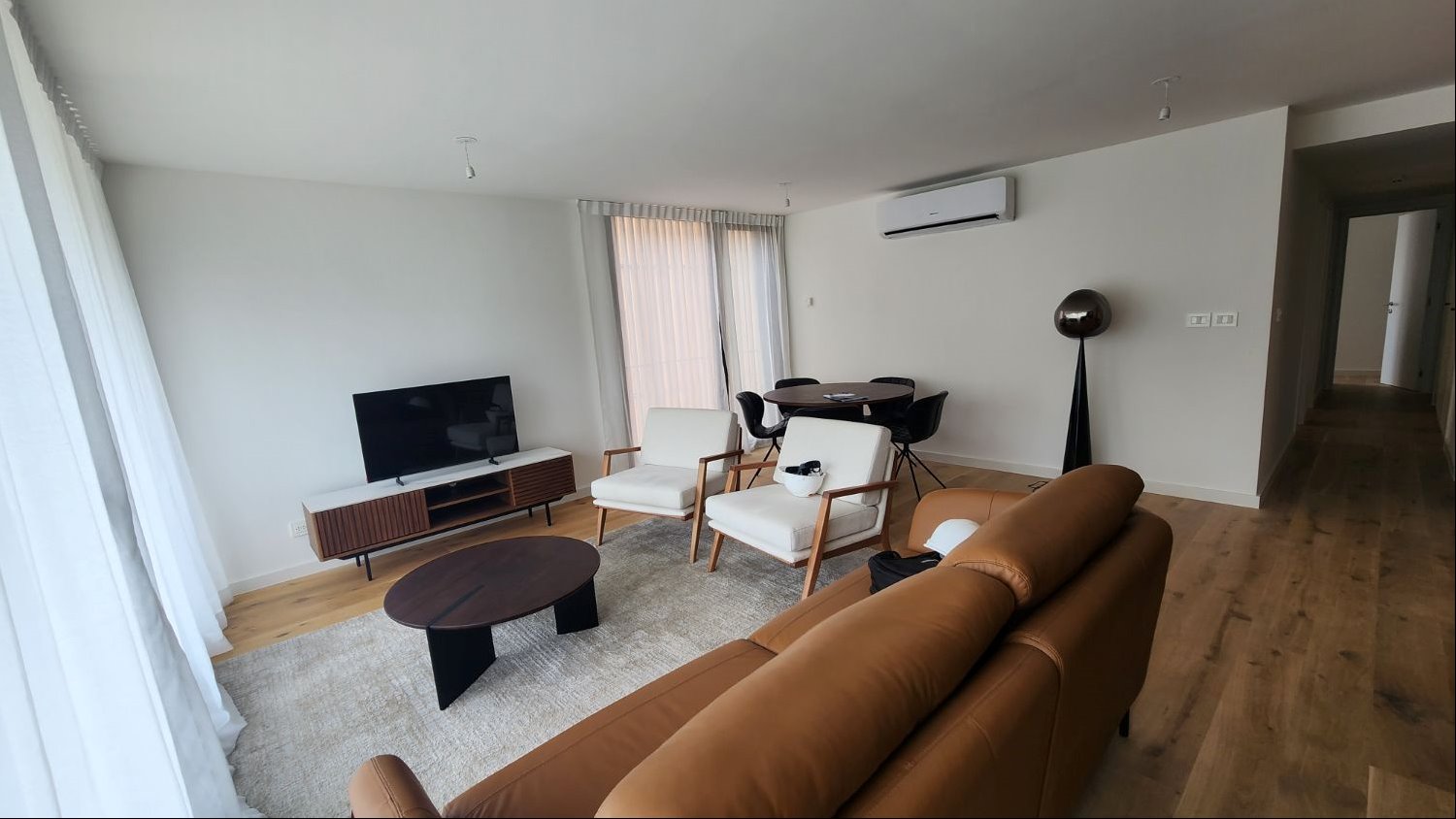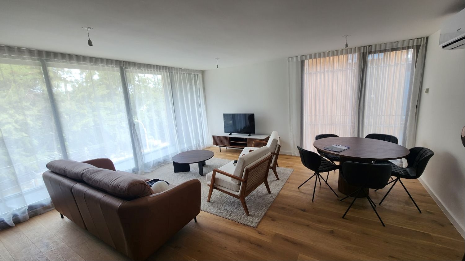 Se entrega con aires acondicionados en todos los ambientes, horno, anafe, campana.