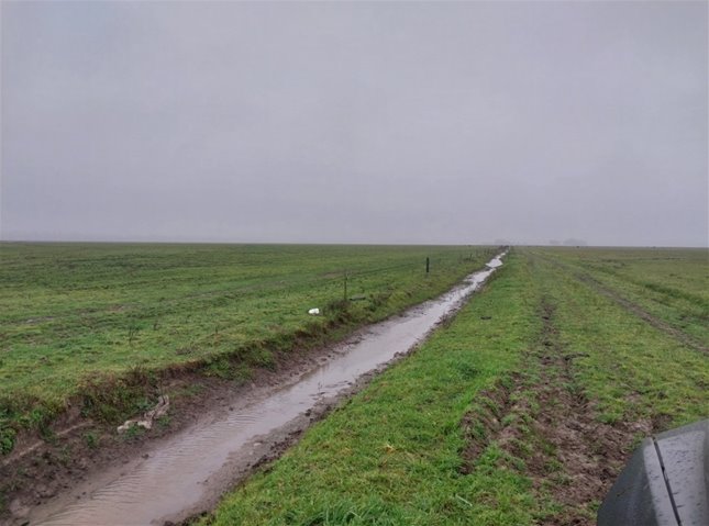 Dentro del área total, el campo esta ocupado por canales de riego ( toma agua del Río Tacuari a nivel de Laguna Merin), administrada por Saman.