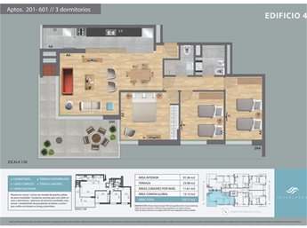 Piso vinílico en listones en Estar y Dormitorios. Instalación prevista para mini-splits en dormitorios.