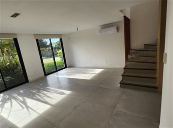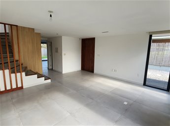 Living-comedor al frente, amplio estar con cocina integrada y salida al fondo.