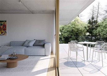 Baños revestidos en porcelanato, con mueble bajo pileta.